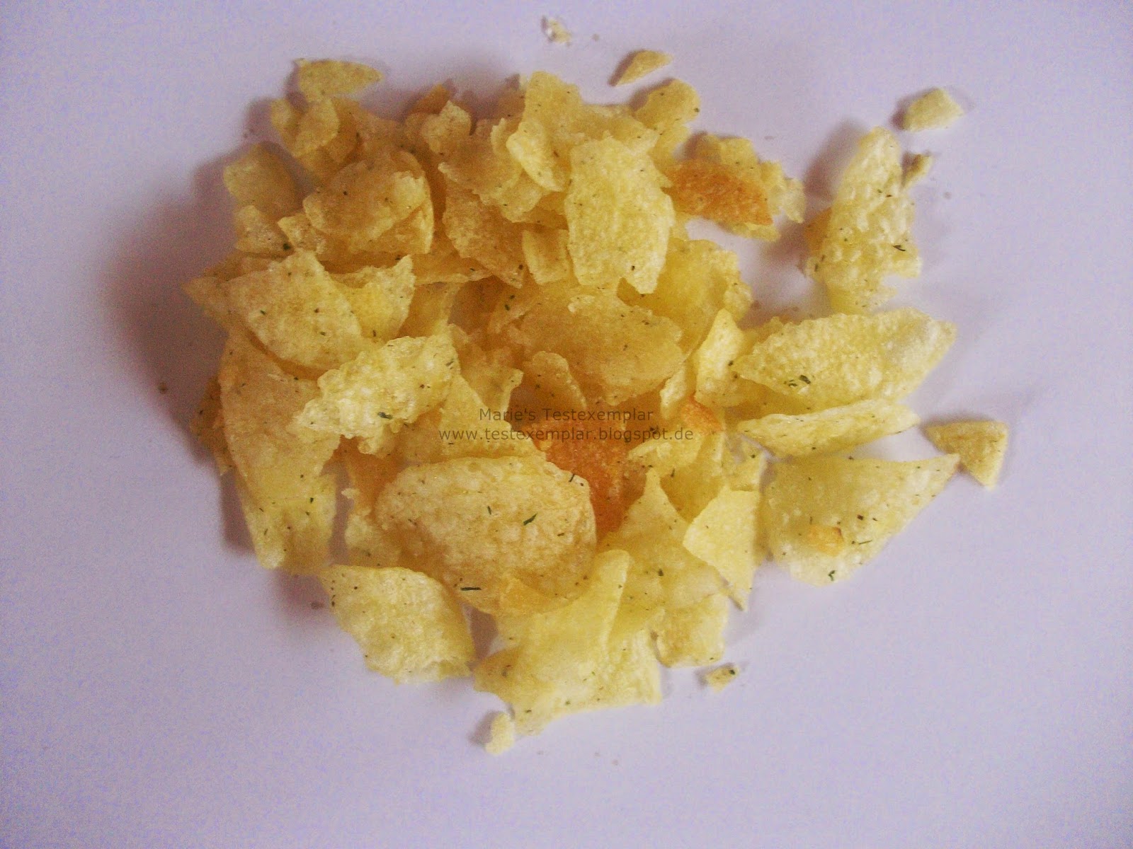 die Chips schmecken würzig nach Käse mit Kräutern.