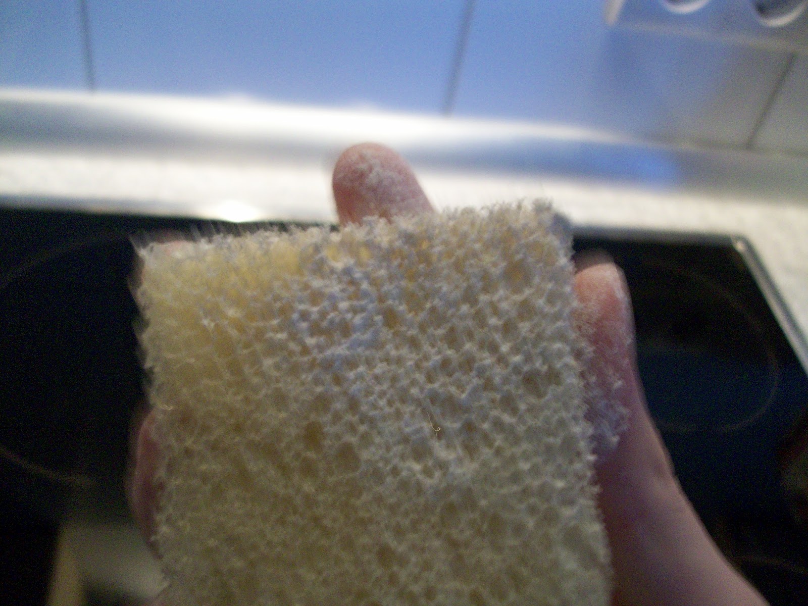 Danach mit dem Schwamm über die Oberflächen gehen die sauber werden sollen.